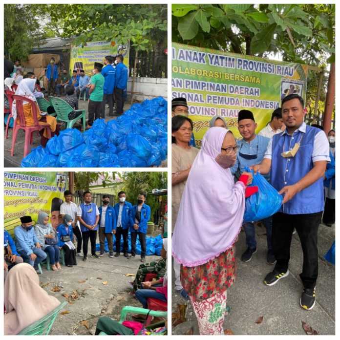 Dalam kegiatan ini, Fuad Santoso SH,MH Selaku Ketua KNPI Provinsi Riau mengundang Anak yatim dan kaum duafa untuk memberikan santunan 100 paket sembako.