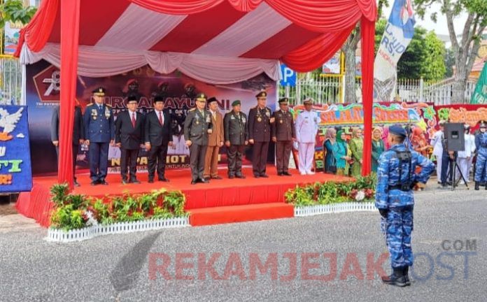 Dalam amanatnya Inspektur Upacara Danrem 031/WB Brigjen TNI Dany Rakca S.A.P., M.Han menyampaikan TNI telah hadir dan menjalankan amanah sebagai garda terdepan sekaligus benteng terakhir Negara Kesatuan Republik Indonesia selama 78 tahun.