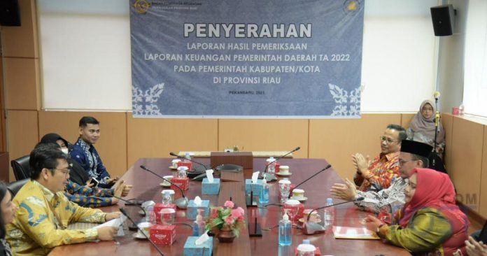 REKAMJEJAKPOST.COM, PEKANBARU – Ketua DPRD Bengkalis H. Khairul Umam mendampingi Bupati Bengkalis Kasmarni menerima penghargaan opini Wajar Tanpa Pengecualian (WTP) pada Laporan Hasil Pemeriksaan (LHP) Badan Pemeriksa Keuangan RI Perwakilan Riau, atas Laporan Keuangan Pemerintah Daerah (LKPD) Tahun Anggaran 2022, Kamis 22 Juni 2023.