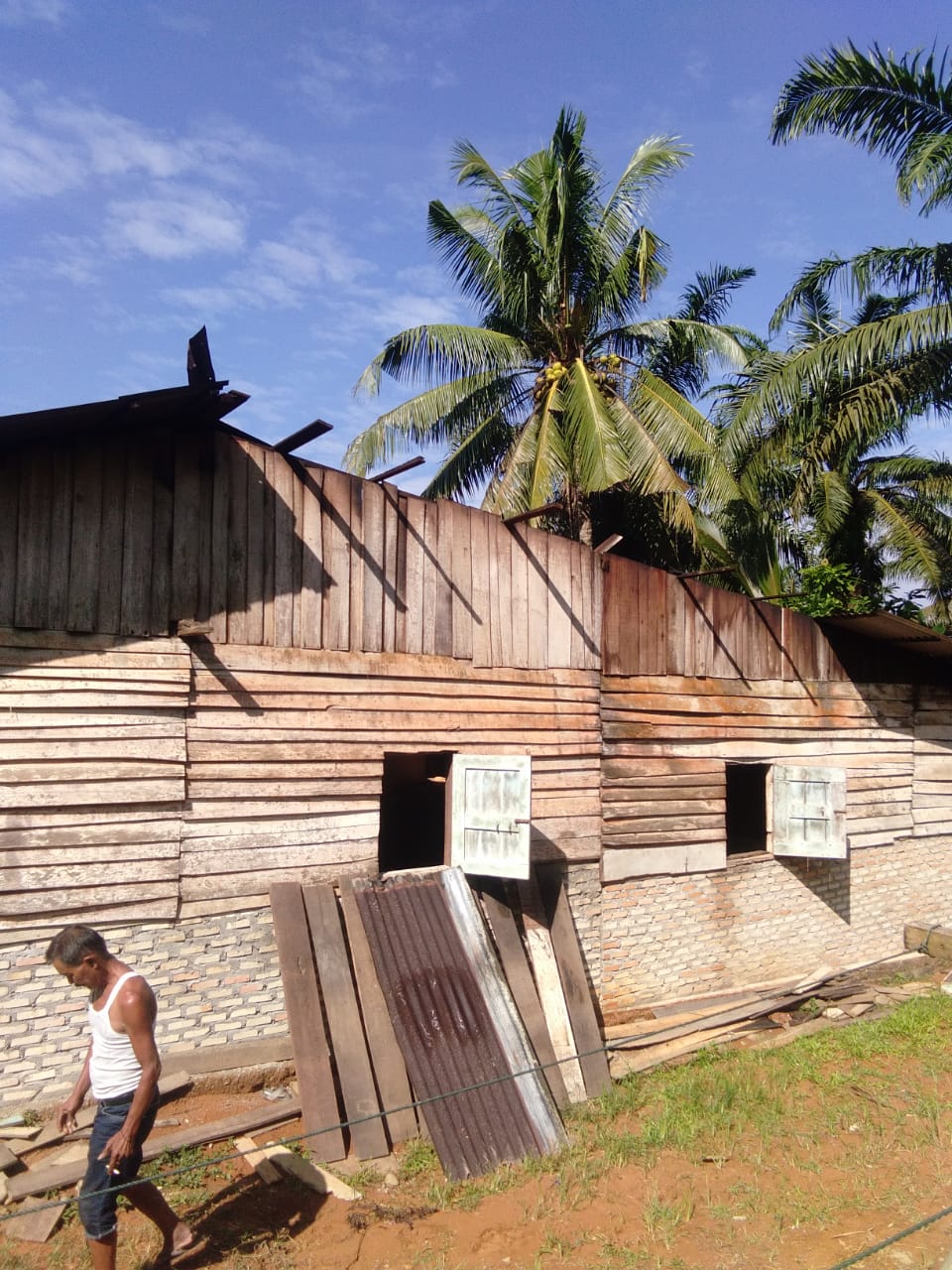 “Awalnya anginnya pelan yang disertai hujan,namun beberapa menit kemudian Angin menghantam pohon dan merusak atap rumah kami,”terang salah satu warga