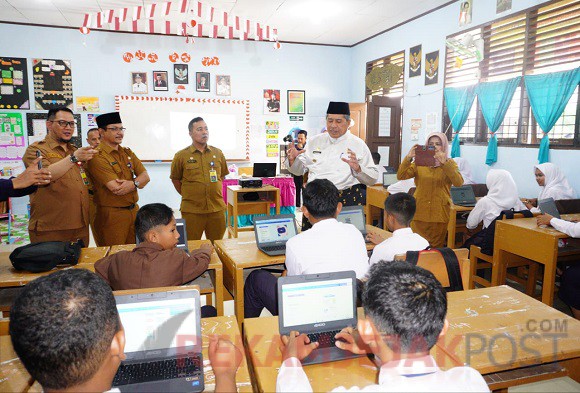 “Sudah 2.817 pelajar tingkat SMP Negeri se-Kabupaten Siak pada kelas 9 belajarnya menggunakan platform Merdeka Belajar mengunakan Chromebook belajar.id yang didesain khusus oleh Kementerian Pendidikan, Kebudayaan, Riset, dan Teknologi sebagai sarana belajar secara digital untuk pelajar dan digunakan secara mandiri oleh para pelajar,” kata Bupati Siak, Alfedri saat meninjau proses belajar mengajar mengajar di SMPN 1 Mempura, Senin (15/7/24).